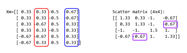 print 'Scatter matrix:\n', rnd(S)
